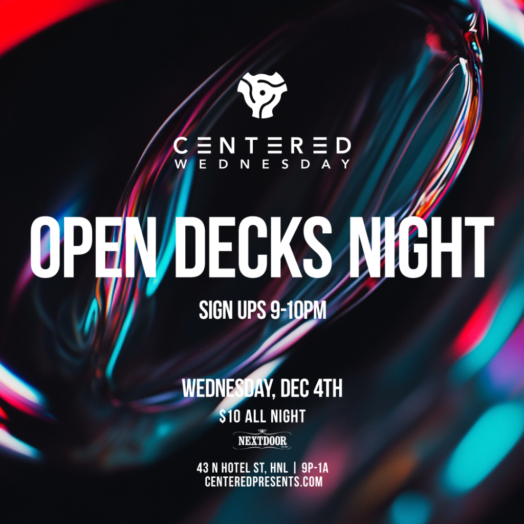 Bring your USB and Headphones and join us for our first everย OPEN DECKSย night at Centered Wednesdays.