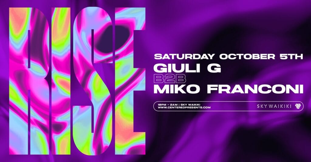 We’re back at Hawaii’s only rooftop nightclub, Sky Waikiki, this Saturday night for our monthly series, RISE. Meet us in the backroom for deep cuts and afro house infused dance tunes to keep you going.