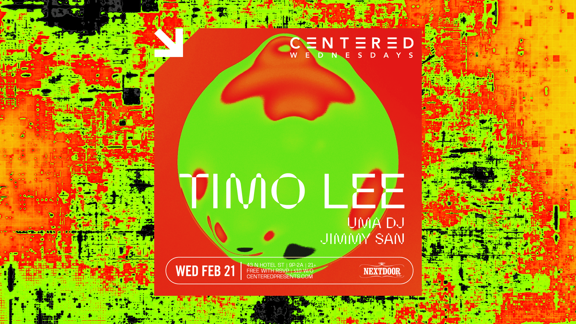 Centered Wednesdays EVERY Wednesday @ Nextdoor | 43 N Hotel St., Chinatown, Honolulu FEB 21ST LINEUP: TIMO LEE (CHOMP! CHOMP! NYC) JIMMY SAN UMA DJ FREE WITH RSVP | $10 WITHOUT